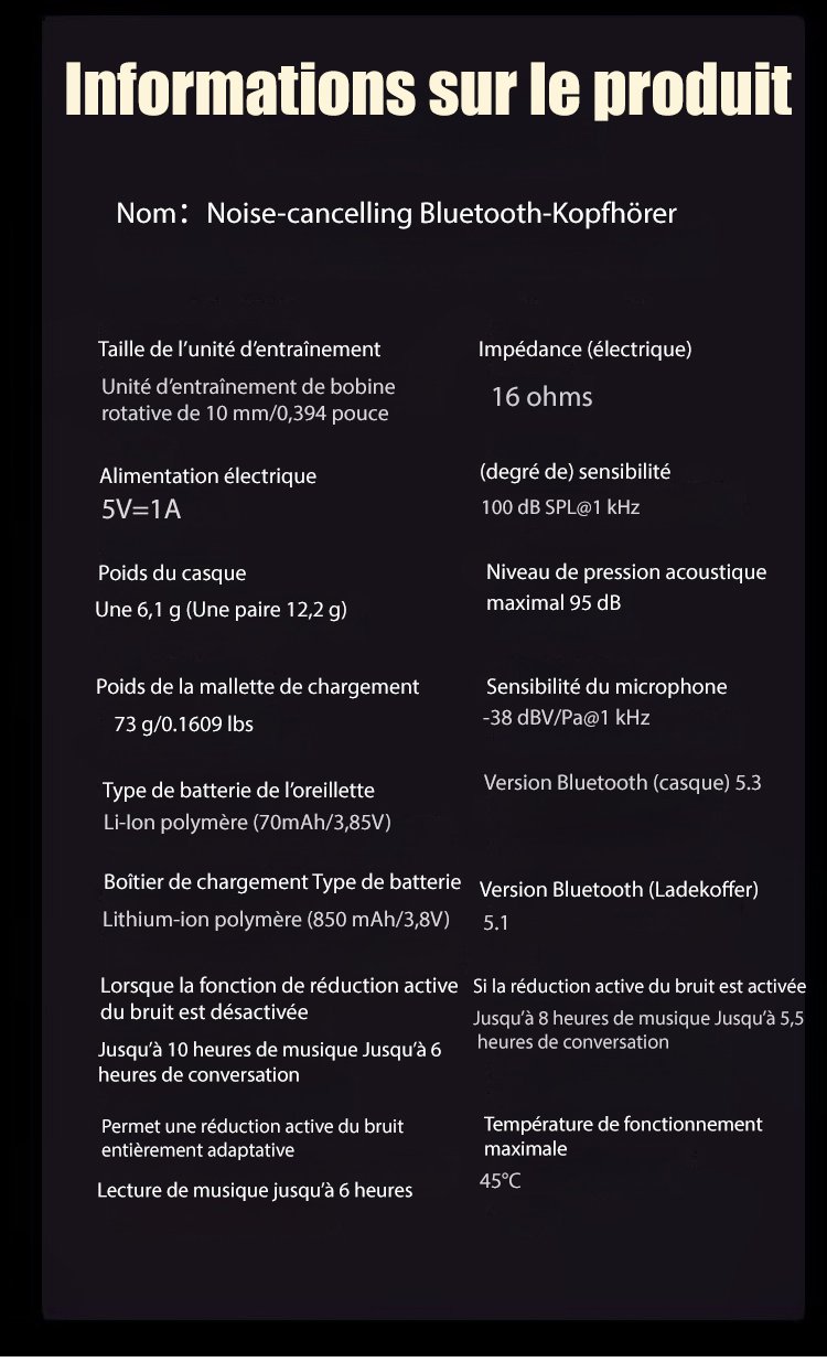 Oreillette Bluetooth à annulation de bruit entièrement intelligente